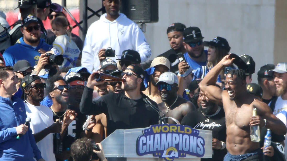 At the Super Bowl Parade in Los Angeles, a female photographer named Kelly Smiley was on the celebration stage taking photos of the events happening in front of her.